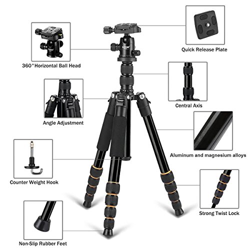 ZOMEI Aluminum Portable Tripod with Ball Head Heavy Duty Lightweight Professional Compact Travel for Nikon Canon Sony All DSLR and Digital Camera