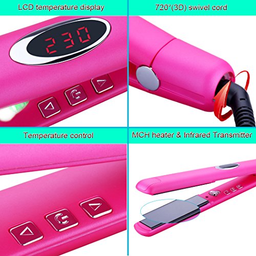 Professional Flat Iron Ionic Infrared Hair Straightener with Adjustable Temperature , Anti-Static Floating Ceramic Plate, Instant Heat Up, with Digital Screen,...