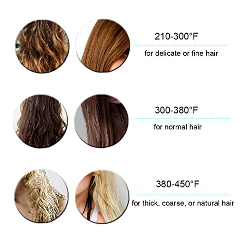 - Digital LED screen makes it a cinch to monitor temperature in anytime and adjustable temperature setting from 190°F~450°F(90°C ~230°C) to suit all your hair types.