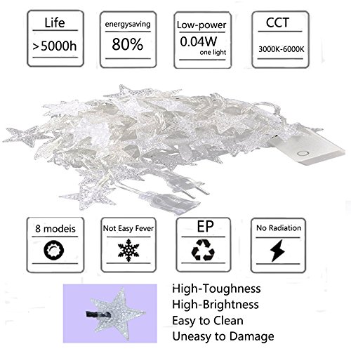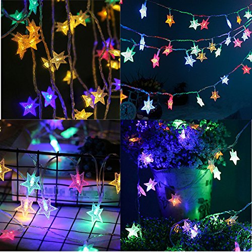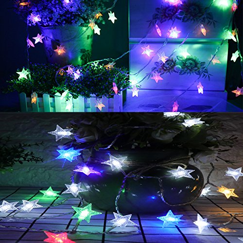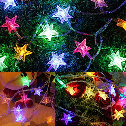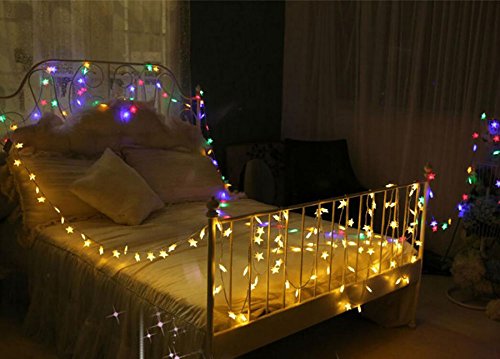 Colored Star LED String Lights Weatherproof Indoor Outdoor Christmas Light Strands with Socket Connector,33 ft 100 LEDs Wire Light for Patio Garden Bedroom Holiday Home Decorating,8 Modes Control