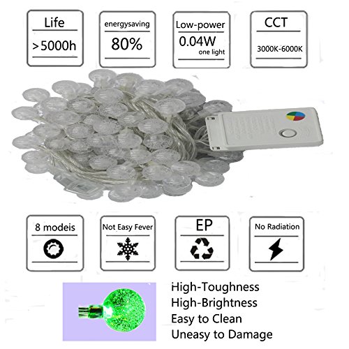Colored Christmas Clear Ball LED Lights String Safe Waterproof Indoor Outdoor LED Light Strands with Socket Connector,33 ft 100 LEDs Wire Light for Patio Garden Home Decorating,8 modes control