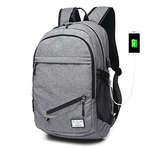 -. Feature : USB CHARGING PORT : External USB charging port on the slim backpack right side provide more convenient charge to your phone and other electronic devices, support 2.1A data-cable, no need to hold the power band in hand. Say goodbye to dead phone or NO Contract. / LARGE CAPACITY: This college backpack dimension is 18.89" x 11.8" x 5.9", a business laptop backpack with numerous compartments and dedicated pockets help you carry a laptop(up to 15.6inch),files, documents, clothing, tablet/kindle/iPad, sunglasses, headphone, cell phone and many other belongings while keeping you organized. / COMFORTABLE: Breathable and anti-sweat shoulder straps, relax your shoulders and offer light weight carrying, a comfortable and convenient everyday backpack. / DURABLE: This college backpack is made from fabric, water-resistant and scratch-resistant material can protect your belongings, and also it is tear-resistant, to use it for a long time. / A GREAT PRESENT: This travel backpack is an essential for anyone on the go, especially for the men you caring about, for your boys, lover, honey, dear, sweetheart, Dad, boyfriend, father, grandpa friends as a Birthday, Valentine's Day, Anniversaries, Father's Day, Thanksgiving, Christmas, Graduation Gift.