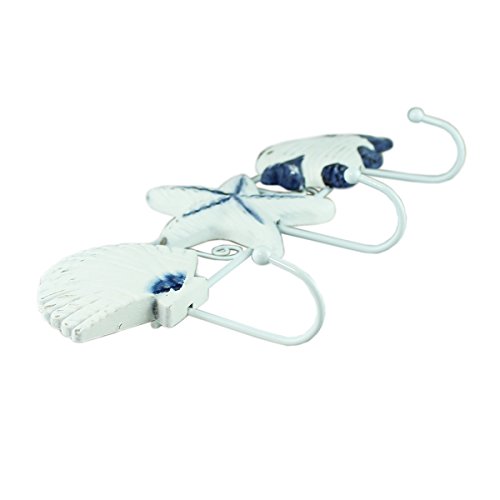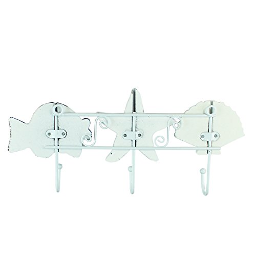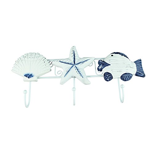 -. Feature : Nautical wall mounted rack is perfect for beach themed room / Fish, Sand Dollar and starfish, 3 in one / Ball hook assures smooth sliding of coats, key chains, hats, robe, scarf and jewelry accessories / Made of resin and metal frame and hooks / Dimensions: 12-1/4"L x 6"H