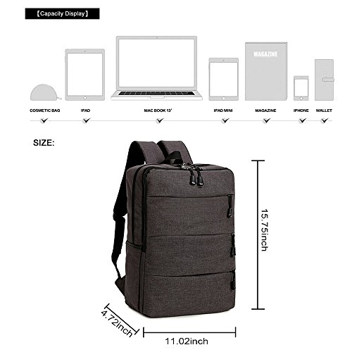 -. Feature : ★SIMPLE & STURDY : This laptop backpack has a linen fabric exterior and a 210 nylon fabric interior. Water resisted, soft, comfortable and wearable. / ★LARGE CAPACITY : The laptop compartment holds up to a 15.6 inch laptop. Multi-pocket enables storage of your iPad, power adapter, cables, phone, notebooks, books, pens, wallets, umbrellas, water bottles and other things to carry with you. / ★MULTI POCKETS : 1 X main zipper pocket, 1 X large front pocket, 3 X small front pockets, 2 X side pockets for water bottle and umbrella. / ★LIGHTWEIGHT & STYLISH : The design of the backpack is simple and stylish. It's a very good backpack for working, traveling, hiking, camping, college, school and everyday using. / ★SIZE : 11.02" L x 15.75" H x 4.72"W. Weight: 1.25 Lb.