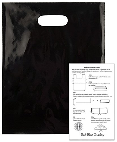 [Product Information]- 100 heavy-duty 2.25 mil glossy plastic die cut merchandise bags with handles and 1 craft instructional for making fun flowers from plastic bags.