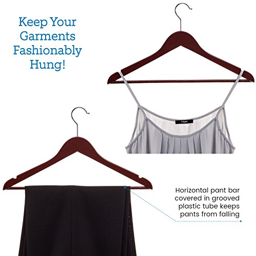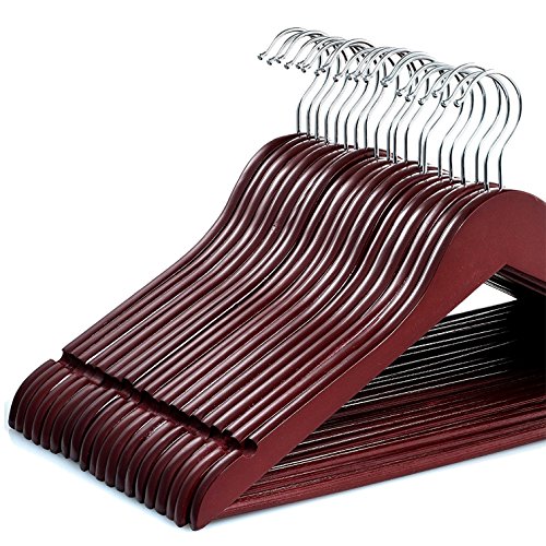 Zober Solid Cherry Wood Suit Hangers with Non Slip Bar and Precisely Cut Notches - 360 Degree Swivel Chrome Hook - Cherry Finish Super Sturdy and Durable Wooden Hangers - 20 Pack