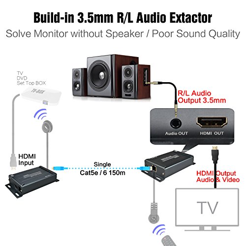COST-EFFECTIVE SOLUTION- Extend HDMI audio/video signals over a cost effective CAT5/5e/6/6e cable up to 525ft, Connect your HDMI source device (PC, game console, Blu-ray player, media player) to the Transmitter, run a CAT5/5e/6/6e cable from the Transmitter to Receiver, then connect your HDTV/projectors from a remote location to the Receiver with an HDMI cable; An HDMI cable is required and sold separately.