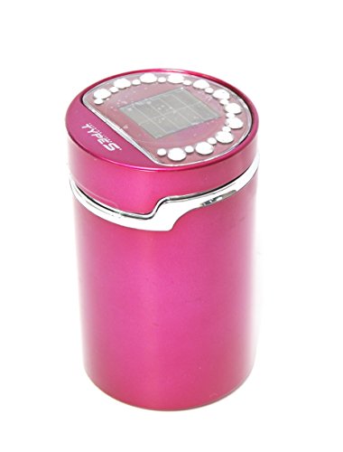 -. Feature : Convenient size easily fits into any standard cup holder / Solar powered pink LED light for easy viewing at night, Light is activated when lid is raised