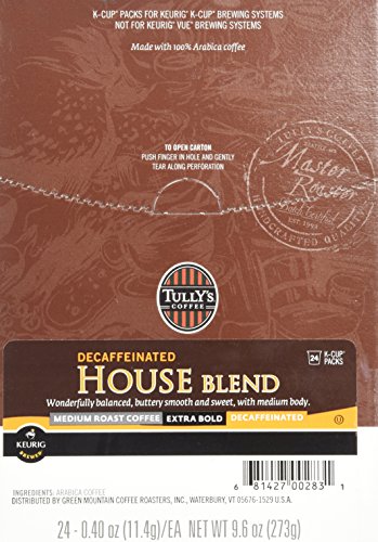 Tully's Coffee Decaffeinated House Blend, K-Cup Portion Pack for Keurig K-Cup Brewers 24-Count (Pack of 2)