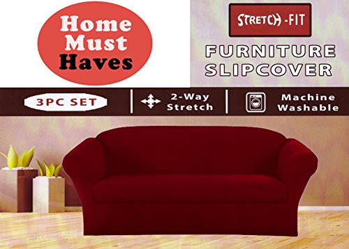 -. Title : Homsthaves Burgundy Furniture Slipcover Stretch Fit 3 Piece Slipcover Set Sofa Cover Love seat cover Armchair Cover