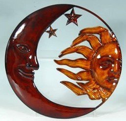 Decorative 16" Round Sun / Moon Metal Wall Plaque