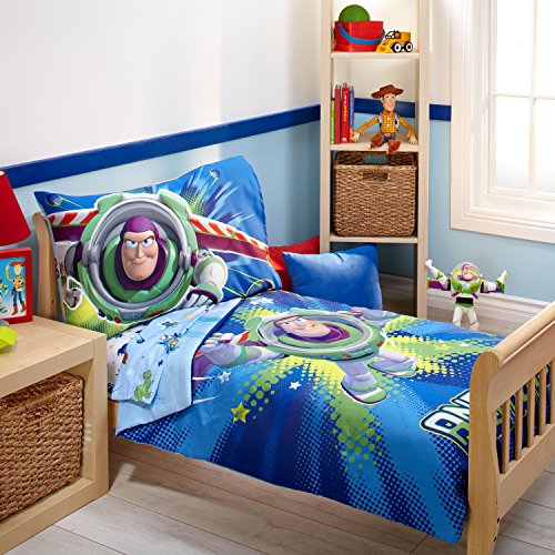 Disney Toy Story 4 Piece Toddler Bedding Set, Blue/Green
