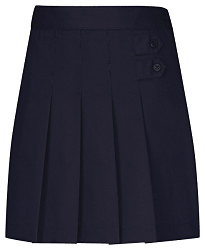 Kilt-inspired girls scooter has 3-pleat front with decorative tabs and poly knits shorts underneath. Side-zip closure. Poly/cotton fabric is easy care, wash-and-wear. Imported. For sizes 4-6X see style 55121, girls plus sizes 55123 and Juniors 55124.Feature