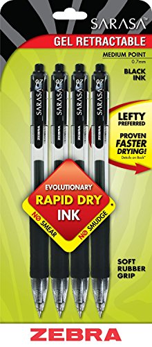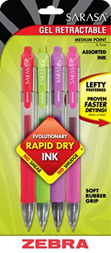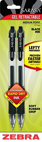 Zebra’s #1 Selling Gel Retractable. Soft rubber grip provides writing comfort and control. Smooth flowing gel ink for scratch-free writing. Translucent barrel provides visible ink color and supply. Acid-free/archival quality ink. Medium Point. Non-refillable.