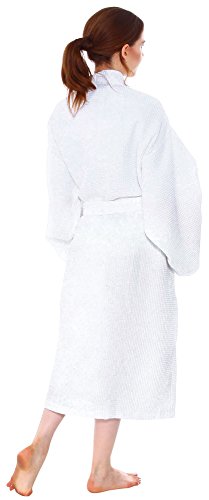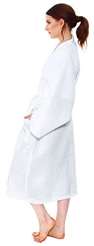 SIMPLICITY MEN / WOMEN COTTON LIGHTWEIGHT WAFFLE KIMONO BATH ROBE, WHITE