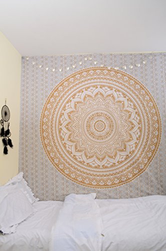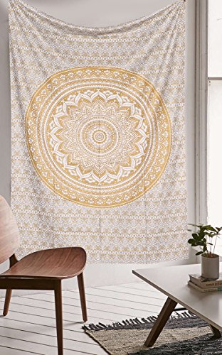 Original Gold Ombre Twin size Tapestry By RawyalCrafts Mandala Hippie Tapestry, Hippie Wall Hanging Tapestries, Bohemian Tapestries, Queen Mandala Home Decor