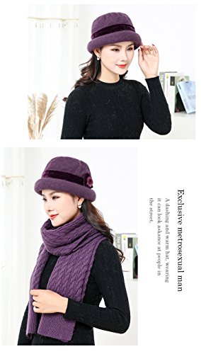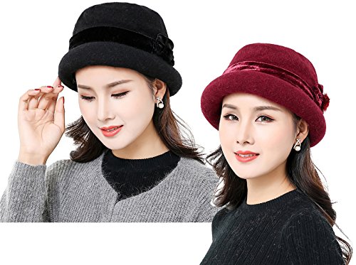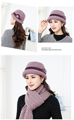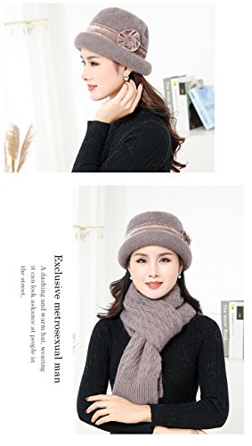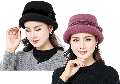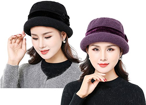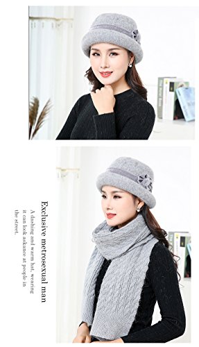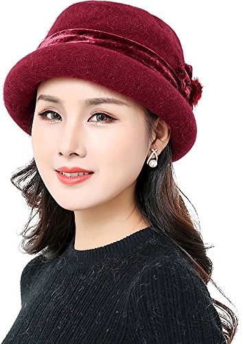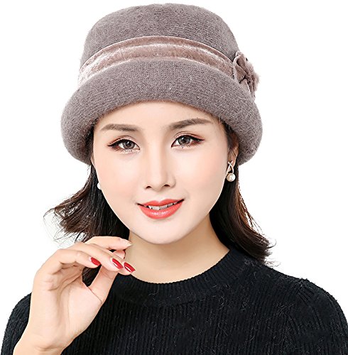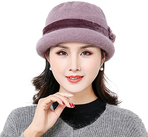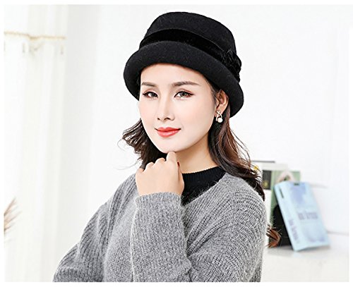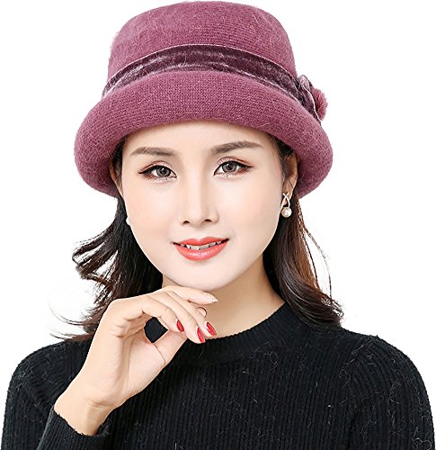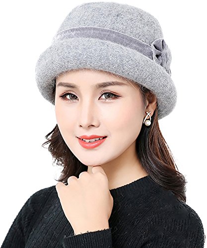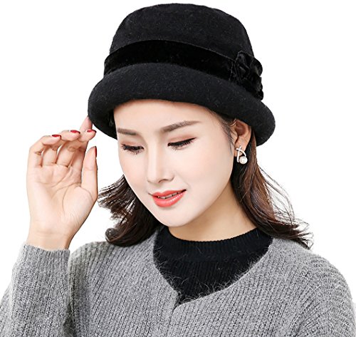 (Ababalaya)/Accessories/Hats/DIRECT FROM USA/Ababalaya Women's Elegant Retro Rabbit Fur Blend Flower Roll-up Bucket Hat Derby Hat
