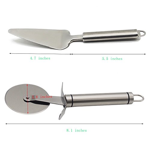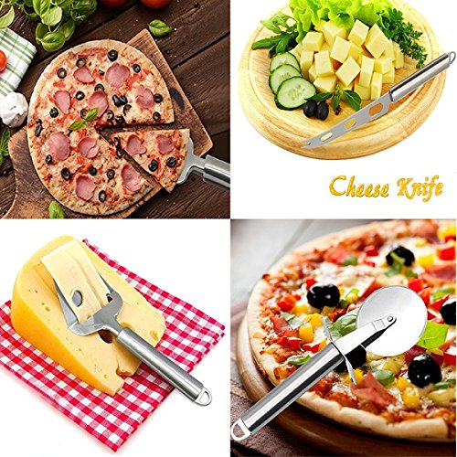 Package Contents: 1 x Pizza Cutter 1 x Cheese Slicer 1 x Cheese Knife 1 x Pie Server 2 x Lovely Hooks 0
