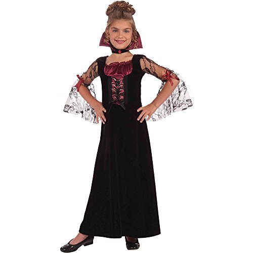 -. Binding : Toy -. Brand : Forum Novelties -. Color : Multi -. Department : girls -. Feature : Costume is available Small (4-6), Medium (8-10) and Large (12-14). / Includes dress and collar / Please note: Does not include shoes. -. Label : Forum Novelties -. Manufacturer : Forum Novelties -. PackageQuantity : 1 -. ProductGroup : Toy -. ProductTypeName : TOYS_AND_GAMES -. Publisher : Forum Novelties -. SKU : WC35419 -. Studio : Forum Novelties -. Title : Miss Vampire Kids Costume