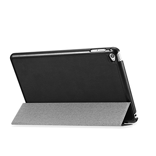 iPad Mini 4 Case, Kuool Slim Fit Smart Folio Leather Case Cover with with Trifold Stand Auto Wake/Sleep Feature for Apple iPad Mini 4 Retina (2015 edition) 7.9 Inch -Black