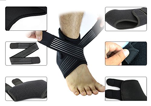 -. Feature : Breathable Neoprene ankle brace - ideal for arthritis,strains,sprains and achilles support. / Simple effective high-grip crisscross Velcro straps attach anywhere along the entire Sleeve to provide customized tightness and bracing to individual needs。 / Athlete friendly open-heel design enables a broad range of motion while bracing the Plantar flexion, talocrural joint, and Achilles tendon; ideal for injury prevention during running, or playing basketball, football, or rugby / Pair design fits either the left &right foot up Protects the Ankle Aids recovery, return to sport and other activities without worrying about strains and sprains / Premium Quality Design - aids recovery, maintains ankle mobility, improves balance and relieves stress and strains. Great for activities which require increased mobility or sudden movements where you have a weakened capacity to do so.