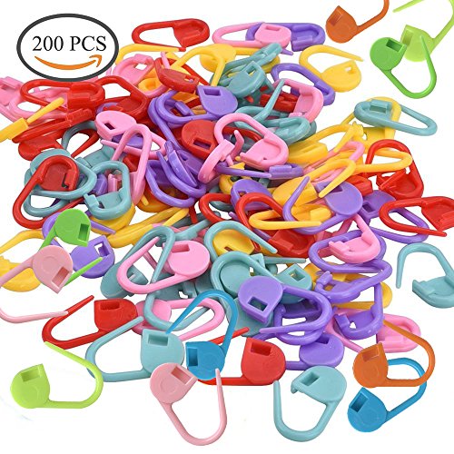 Knitting Stitch Marker 200 PCS Crochet Stitch Counters 10 Colors Stitch Holder Plastic Safety Pins for Knitting