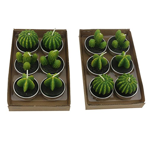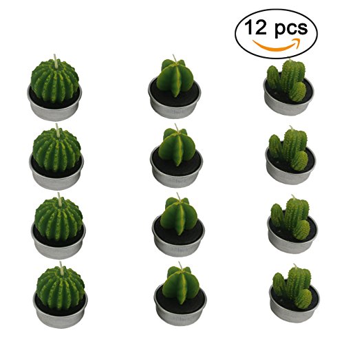 Ogrmar Cactus Candles Decorative Tea Light Candles for Home Party Birthday Wedding Decoration 3 Styles Pack of 12 (Green)