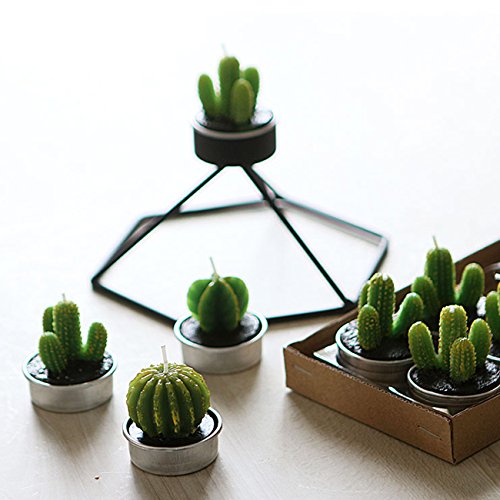 Non-Spilling Design: 1.6" diameter cactus tealight candles in metal tealight holders. Lasts about 30-40 minutes burning time.