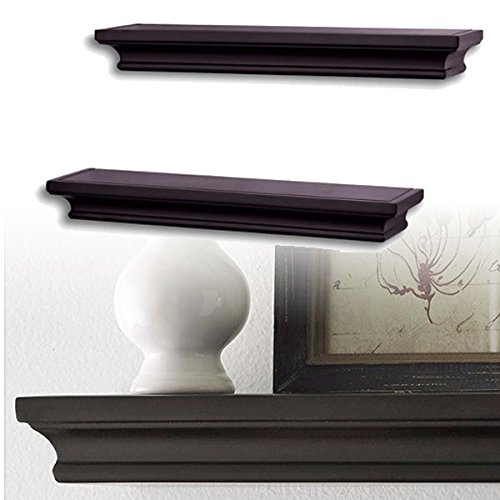 Traditional Small Wall Shelf Ledge Crown Molding Design Black Set of 2 , Buyer Receives 2 Shelves