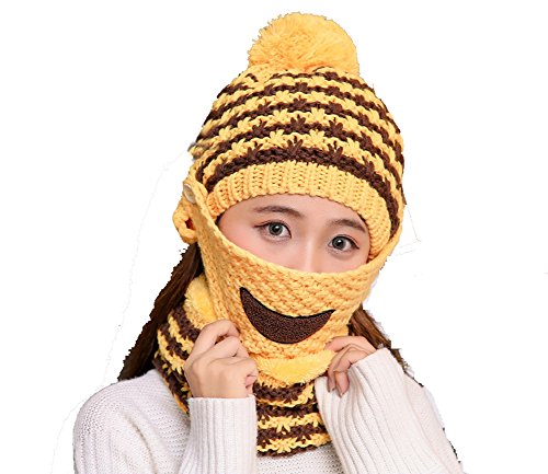 -. Title : ニット帽 レディース ポンポン 目出し帽 3点セット プレゼント 防寒保温 小顔効果 耳を守る【全6色】