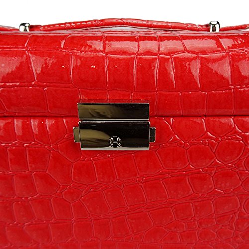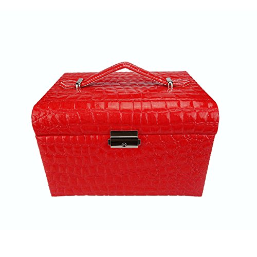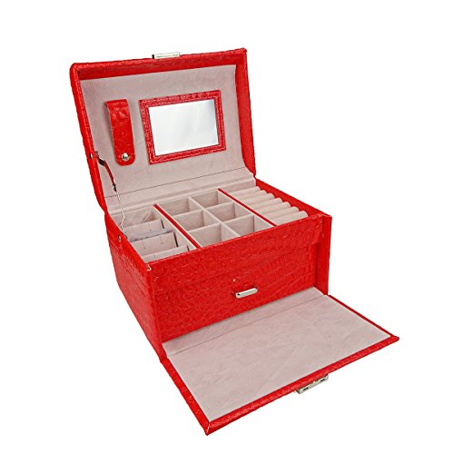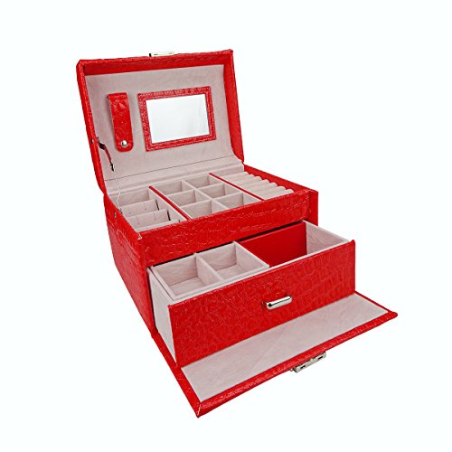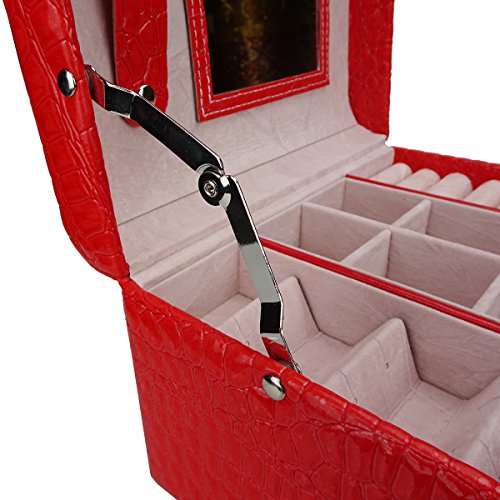 Lanscoe Jewelry Leather Mirror Box Storage Case Organizer Ring Earring Necklace Display Gift for Women-Red