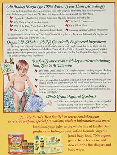 -. Feature : 2 Pack of Earth's Best Organic Whole Grain Cereal / USDA organic / Iron fortified, Easily digestible, No added salt or sugar / No artificial flavors, colors or preservatives Kosher / Tastes Great