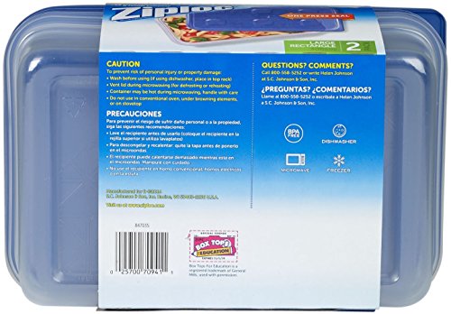 Ziploc Container Large Rectangle, 9 cup Containers - 2 ct