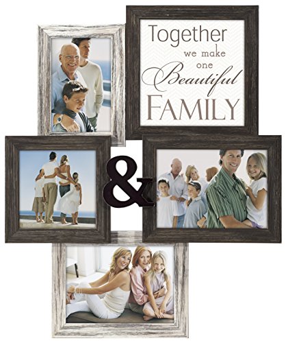 Malden International Designs Wall Sentiments Together We Make One Beautiful Family with Ampersand Collage Frame, 4 Option, 1-4x6 & 1-5x5 & 2-5x7, Black