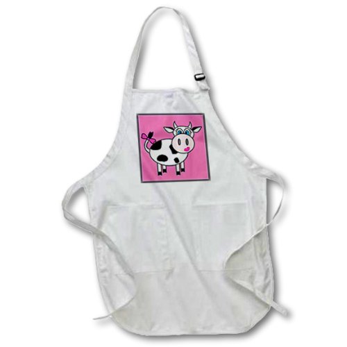 3dRose apr_6095_1 Happy Cow Girl Full Length Apron with Pockets, 22 by 30-Inch, White