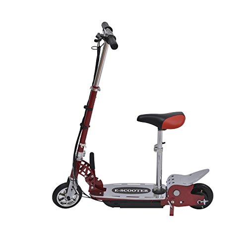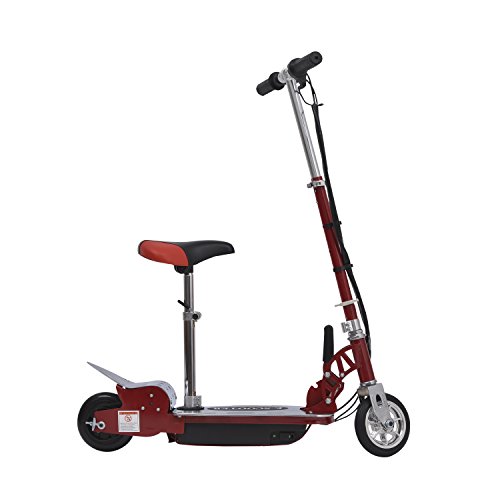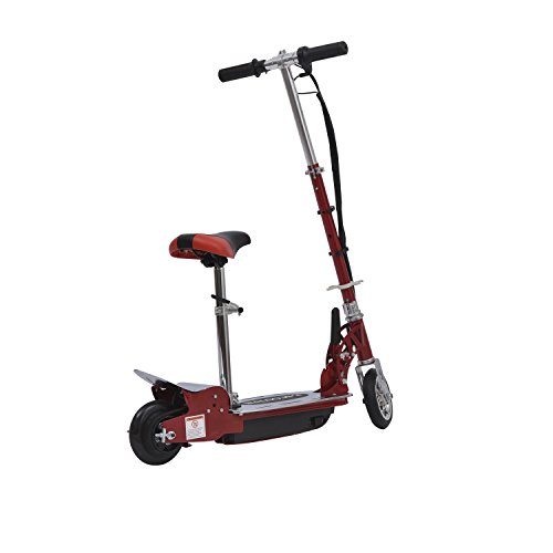 With a top speed of 7.5mph you are able to get to your destination in no time. The wide foot deck adds optimal balance and stability to make quick turns. The sturdy steel frame allows for riders up to 154 pounds so it is perfect for young kid that want their first scooter. It uses a lead acid battery with an included charger that charges in approximately five to eight hours. This scooter comes with a seat so you can sit comfortably as you ride in style. The belt driven motor allows you to rapidly get to top speed and the front hand brake keeps your youngster in complete control.