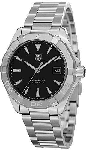 Stainless steel watch in brushed finish featuring round black dial with luminous hands/markers, numbered unidirectional bezel, and screw-down crown