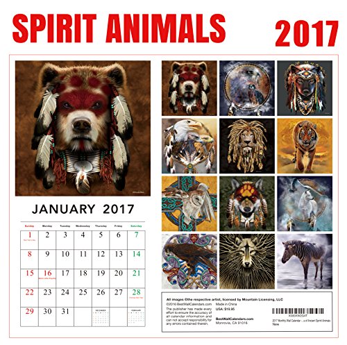 -. Binding : Office Product -. Brand : Best Wall Calendars -. Color : Brown -. EAN : 0096362226479 -. Feature : 2017 Calendar featuring beautiful full color photographed images for every month of the year. / Includes Holidays and Observances / Perfect for office spaces, bedrooms, classrooms and more! / Makes a great gift for friends and family! / Keep your appointments and Birthdays organized in one place! -. Label : Best Wall Calendars -. Manufacturer : Best Wall Calendars -. MPN : 26479 -. PackageQuantity : 1 -. PartNumber : 26479 -. ProductGroup : Office Product -. ProductTypeName : OFFICE_PRODUCTS -. Publisher : Best Wall Calendars -. Studio : Best Wall Calendars -. Title : 2017 Spirit Animals Calendar - 12 x 12 Wall Calendar - 210 Free Reminder Stickers -. UPC : 096362226479