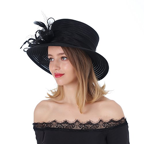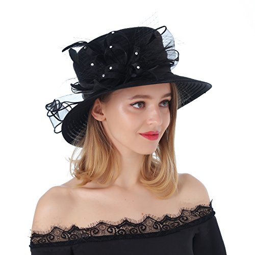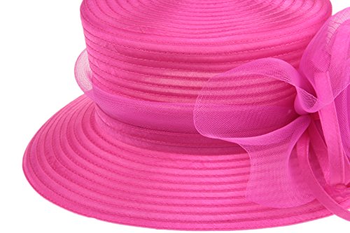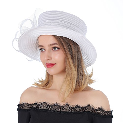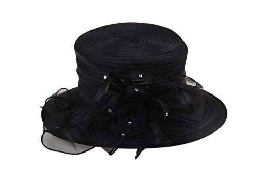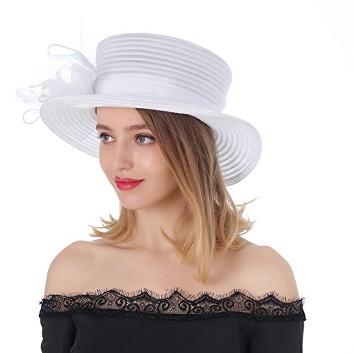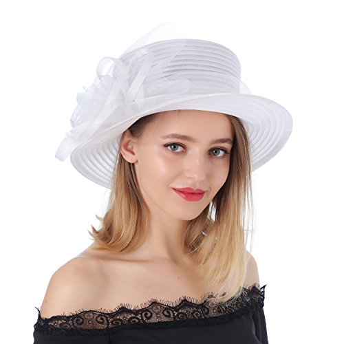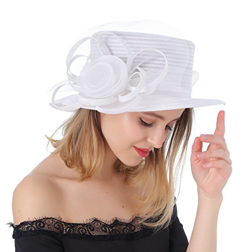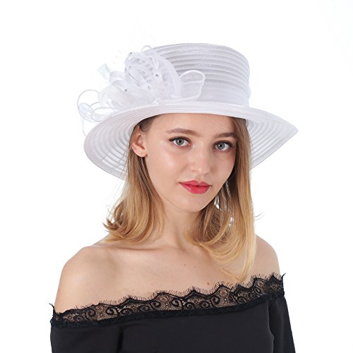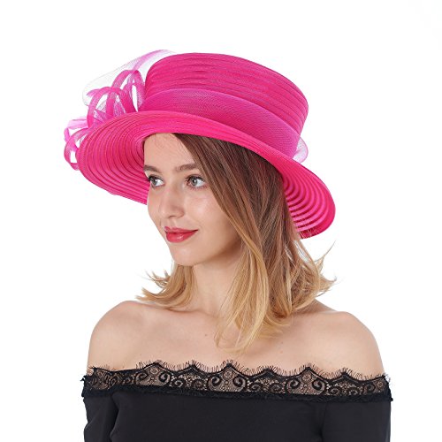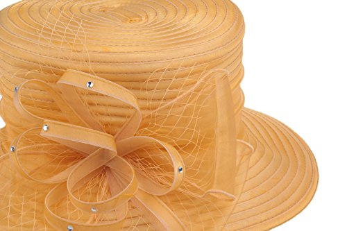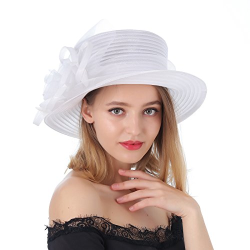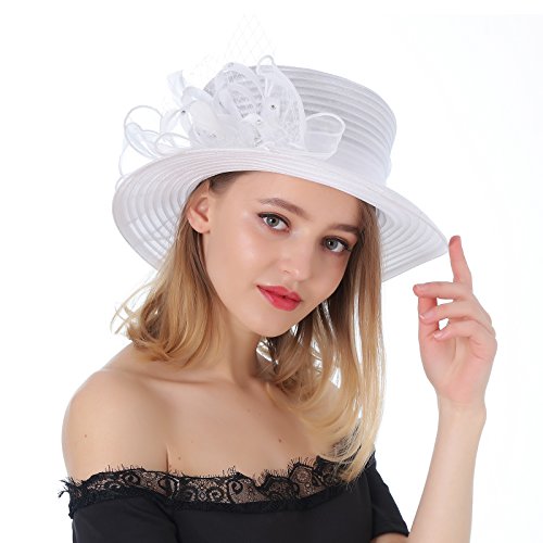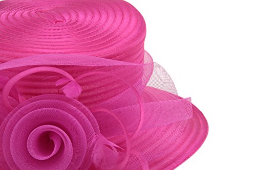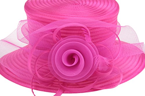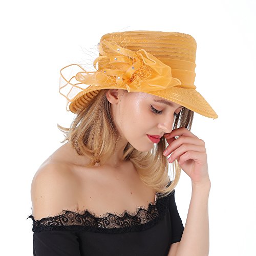 Whoever is on top of the winners board, you will be the focus of all attention in this charming organza derby hat. Its wide brim with a shimmering organza. that is the perfect accessory for any of those outdoor formal events those seasons usher in. The perfect hat for weddings, garden parties, church functions, race day events, or simply standing out from the crowd. Material: Stripe Organza 100% Polyester. Size: Fit for head circumference: 21.26 inch~22.83 inch. ,Inside drawstring can adjustable to size-fit to your head, (adjustive by flexible strap); Flat-size: Crown depth: 4.13 inch ,brim width: 2.95 inch Design: Simple Style, Flat brim decorate gauze and Floral. Color: Rose, Yellow, Orange, White Prompt: You can make it looks perfect by STEAM IRONING if you make it wrinkle. Wash care information: clean it with wet cloth gently. OCCASION Wear to Church, Twenty's Parties or Gatsby Picnics.Church hat, Wedding hat, Kentucky Derby hat cap, floral organza Hat, Lady hat, summer hat, beach travel hat. 0
