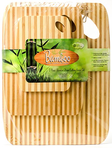 - 3 Piece Organic Natural Eco-Friendly Bamboo Cutting Board Set