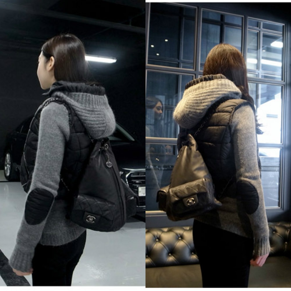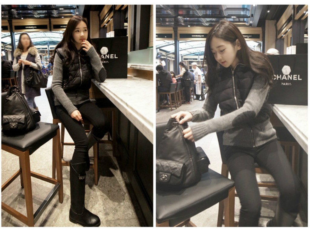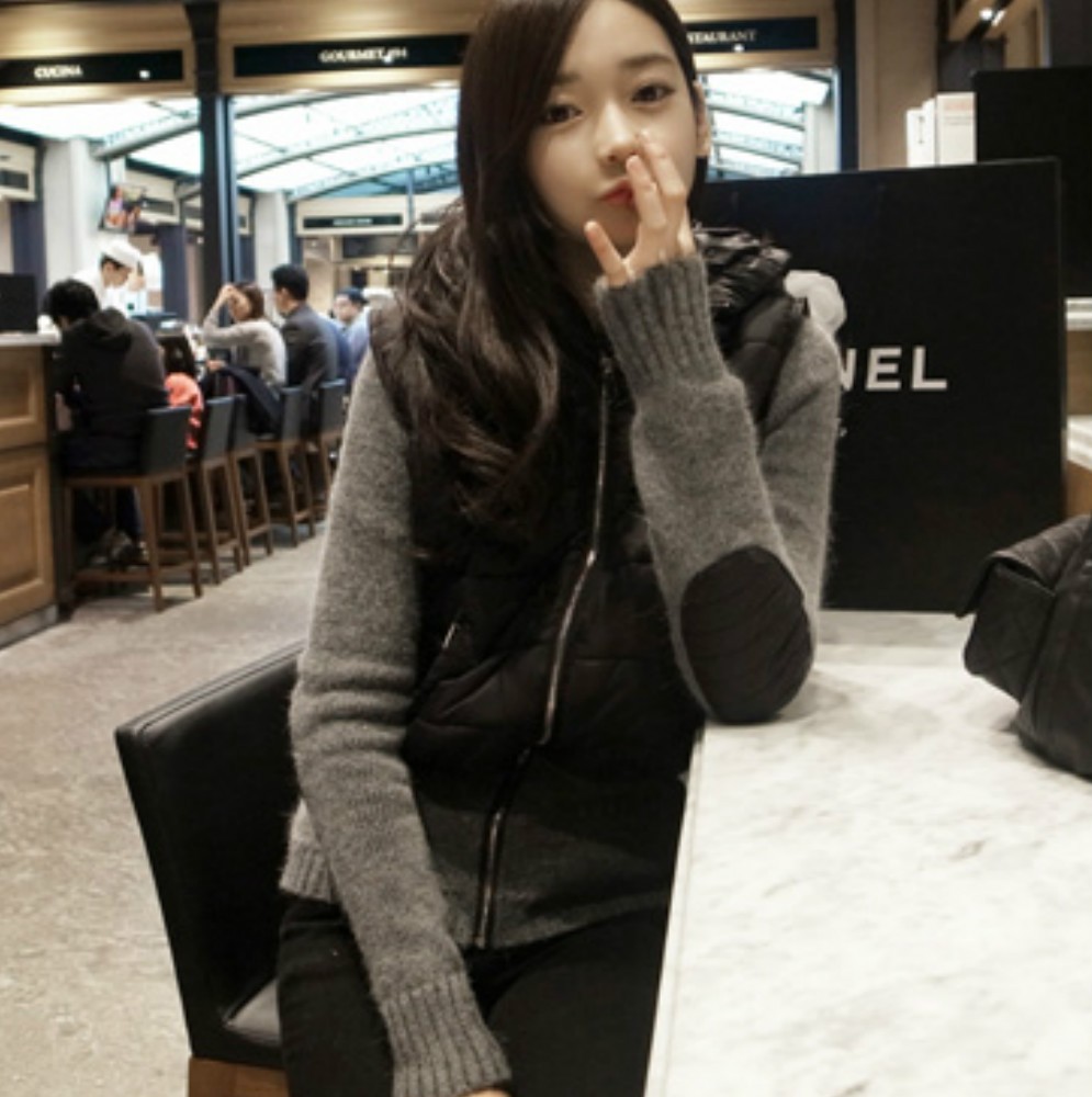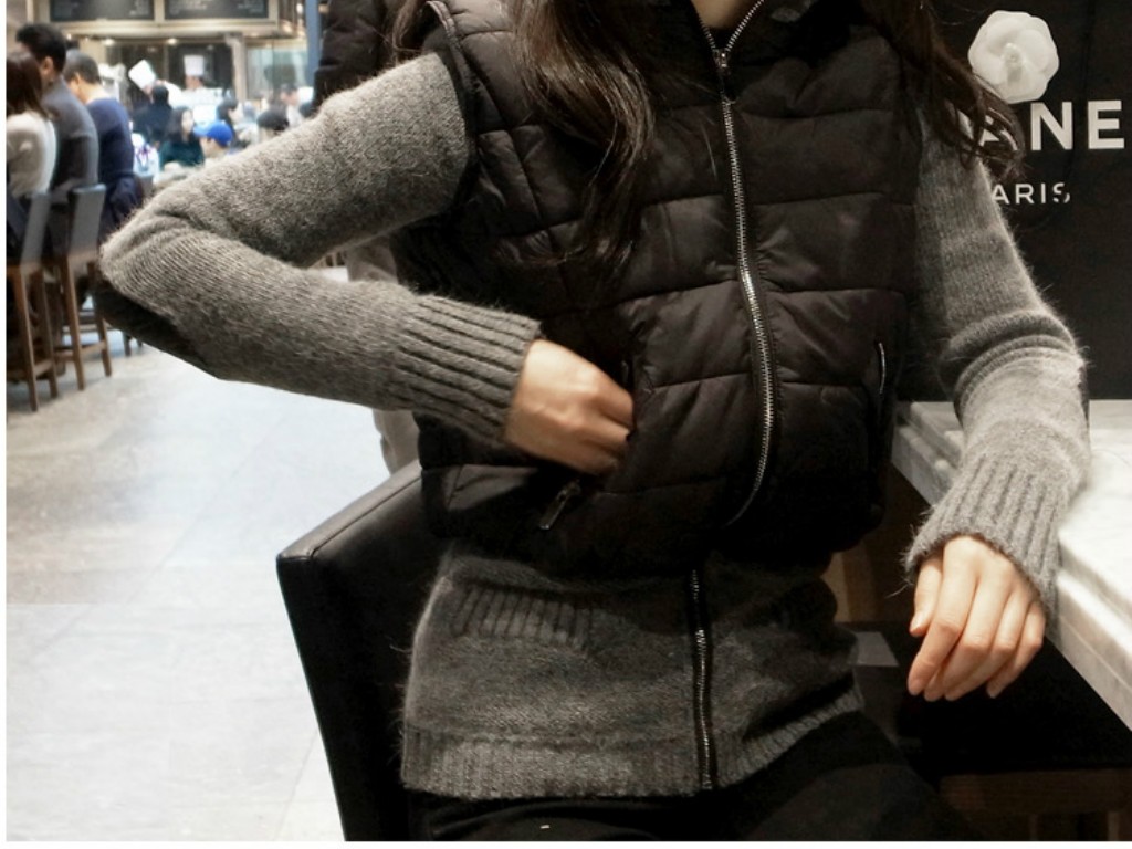 レイヤード風☆ニット&ダウンベスト ドッキングパーカーコート ジャケット