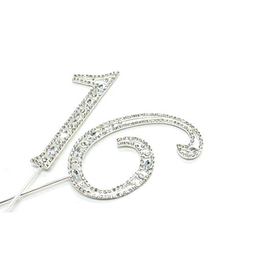 HUELE Silver 16 CakeTopper Birthday Party Supplies with Sparkling Rhinestone Crystals