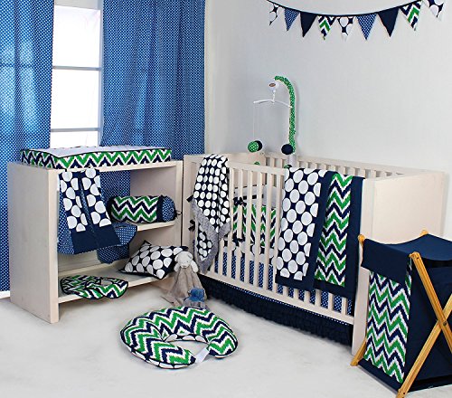 Bacati Mix and Match Zigzag Ikat Window Valance, Navy/Green
