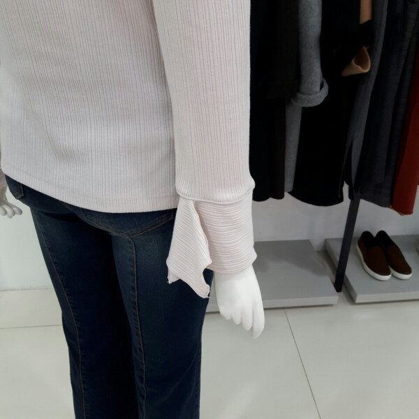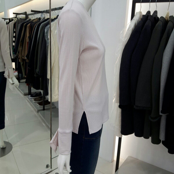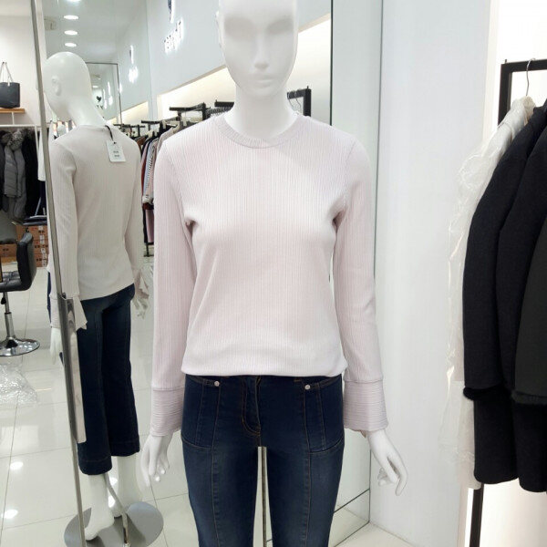 티렌 잔골지 기본 티셔츠에 소매프릴이 여성스러운 티셔츠입니다 코트계절에 코디하기좋은 티셔츠입니다
