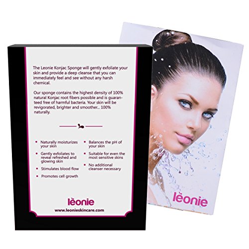 -. Binding : Health and Beauty -. Brand : Leonie -. Feature : NATURAL AND BIODEGRADABLE; environmentally produced and vegan friendly. / PROMOTES HEALTHY SKIN; no harsh chemicals, stimulates blood flow and promotes cell growth. Comes with a 90-day money back guarantee. Click the Orange button to Order Now! / GENTLY EXFOLIATES; no extra cleansers needed, sponge can be used on its own to leave fresh glowing skin. / TWO SHOWER HOOKS; contains two shower hooks allowing you to secure your sponge in a shower or bath for easy access. -. Label : Leonie -. Manufacturer : Leonie -. PackageQuantity : 2 -. ProductGroup : Health and Beauty -. ProductTypeName : HEALTH_PERSONAL_CARE -. Publisher : Leonie -. Studio : Leonie -. Title : Leonie Konjac Sponge Duo Pack. 100% Natural Sponges for Gentle Exfoliation & Skin's pH Balance. Eco and Vegan friendly skin care.