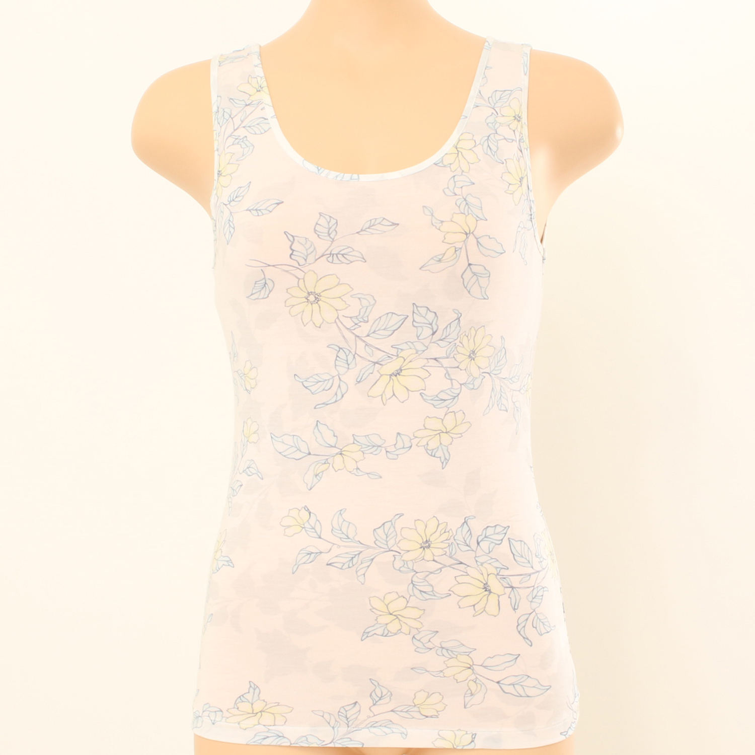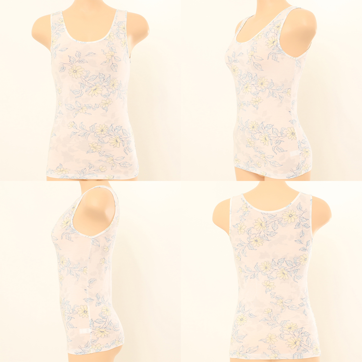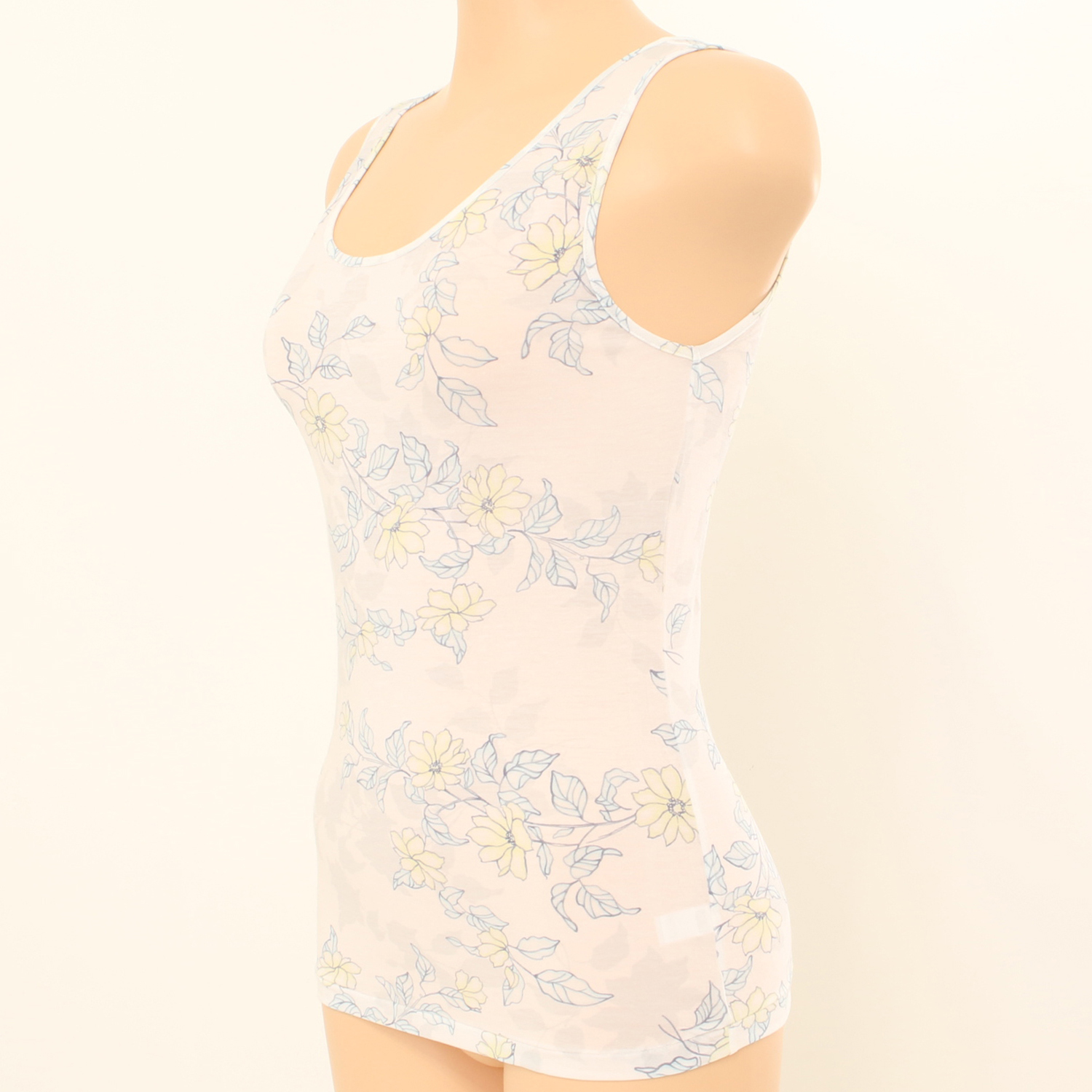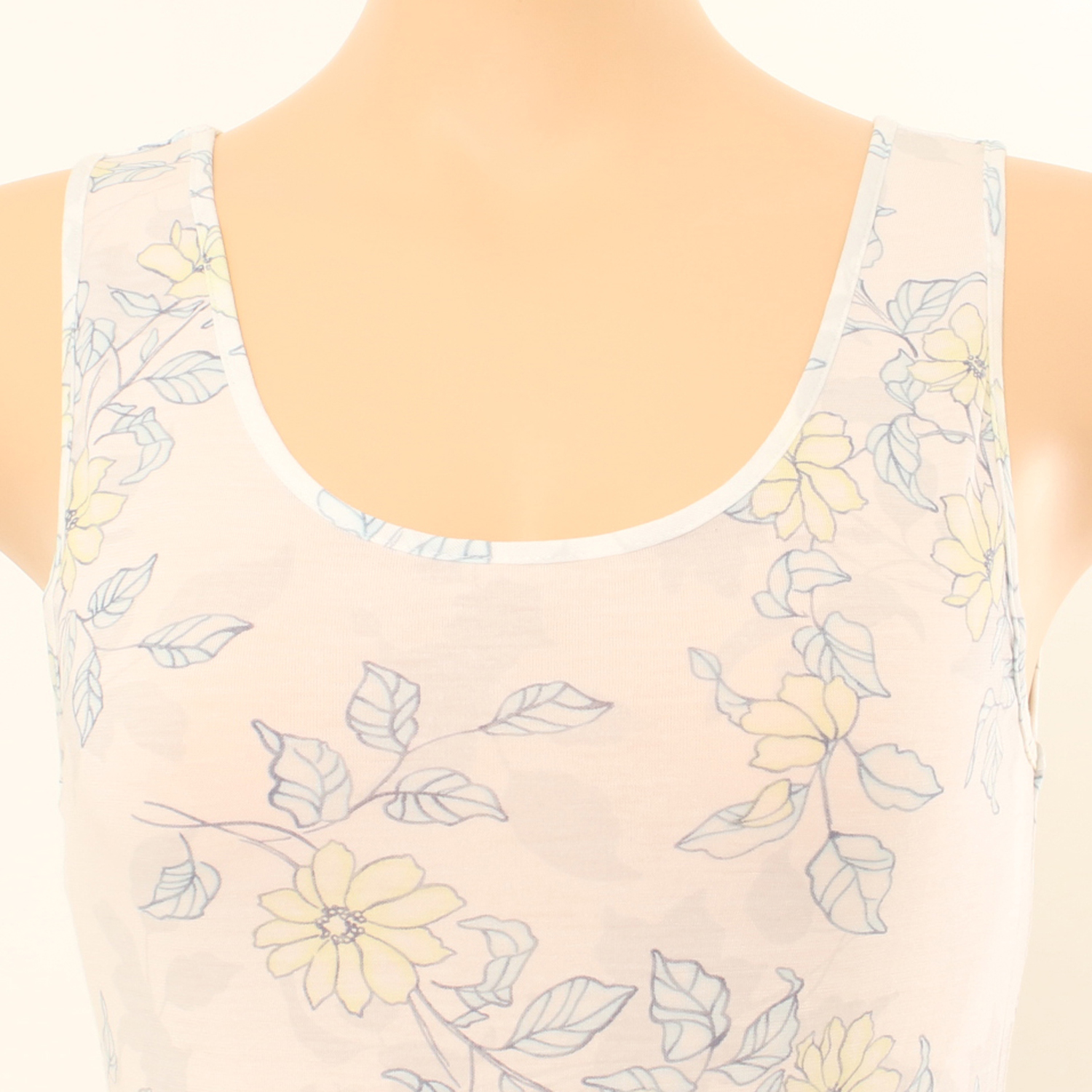 나염런닝제품입니다. 연한 파스텔계열의 꽃나염이 그라데이션 느낌으로 프린트되어 여성스러운