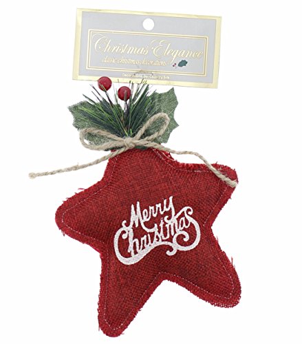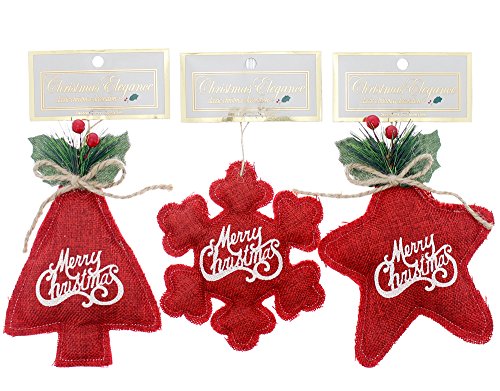 Holiday "Merry Christmas" Ornaments Country Style Cushioned Burlap/Felt, Red, Medium, 3 Piece Set, 4"-6"