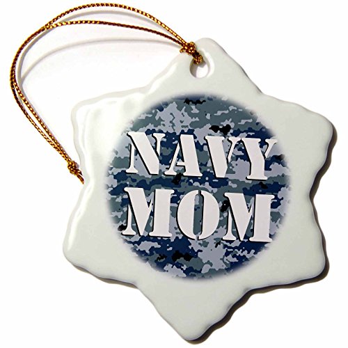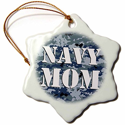 Janna Salak Designs Navy Mom Blue Camouflage Snowflake Porcelain Ornament, 3-Inch