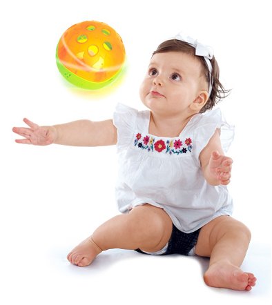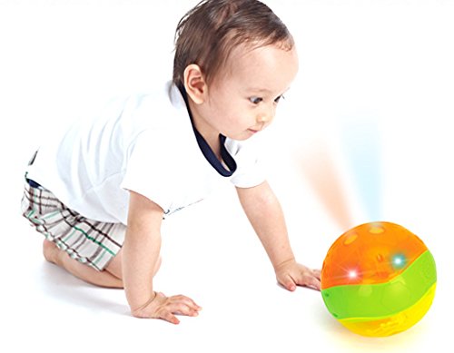 -. Feature : Musical Light Up Interactive Rattle Ball / Shake or roll the ball to hear the sweet music! / 5 grabbing holes are convenient for babies to grab and shake / Colorful flashing LED lights / Product Dimensions: 5" x 5" x 5"