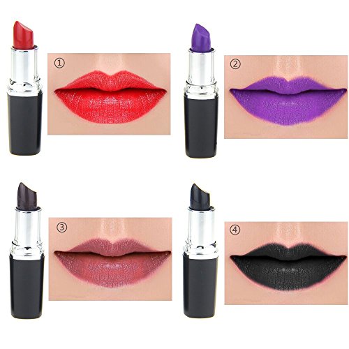 4 color Party Favourite Lipsticks Brand New Design with High Quality Materials Variety of colors to suit every style and occasion Color : red ; Vampire red ; black ; purple; Brand : Travelmall MPN(PartNumber) : TC-0430TM Product Dimensions(LxWxH) :